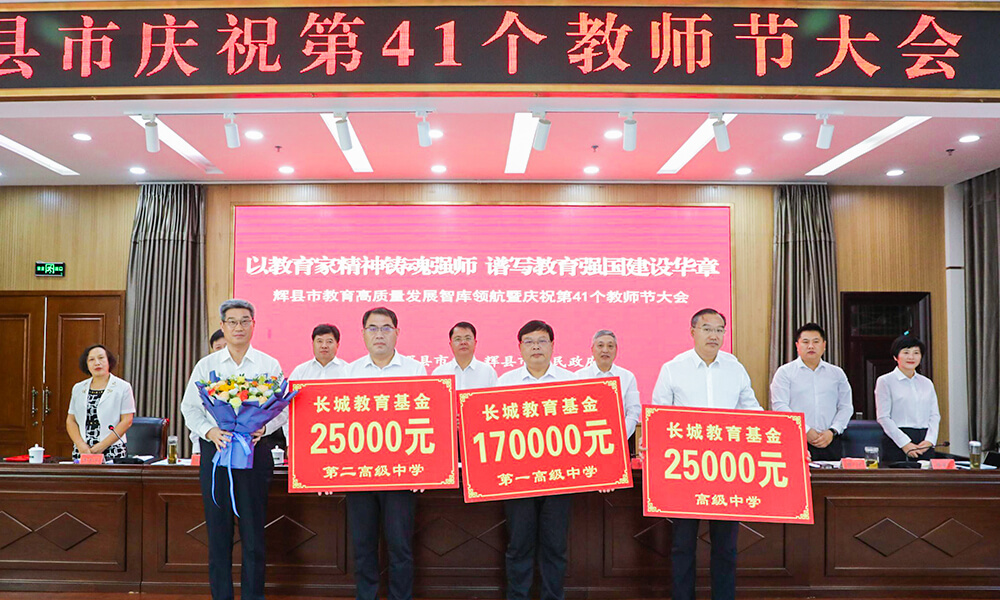9月9日上午9點(diǎn),輝縣市教育高質(zhì)量發(fā)展智庫領(lǐng)航座談會暨慶祝第41個教師節(jié)座談會隆重召開。借助政府搭建的平臺,新鄉(xiāng)長城再次為當(dāng)?shù)貎?yōu)秀師生頒發(fā)獎助金,這不僅僅是一場儀式,更是新鄉(xiāng)長城八年來對教育事業(yè)始終如一的堅守。